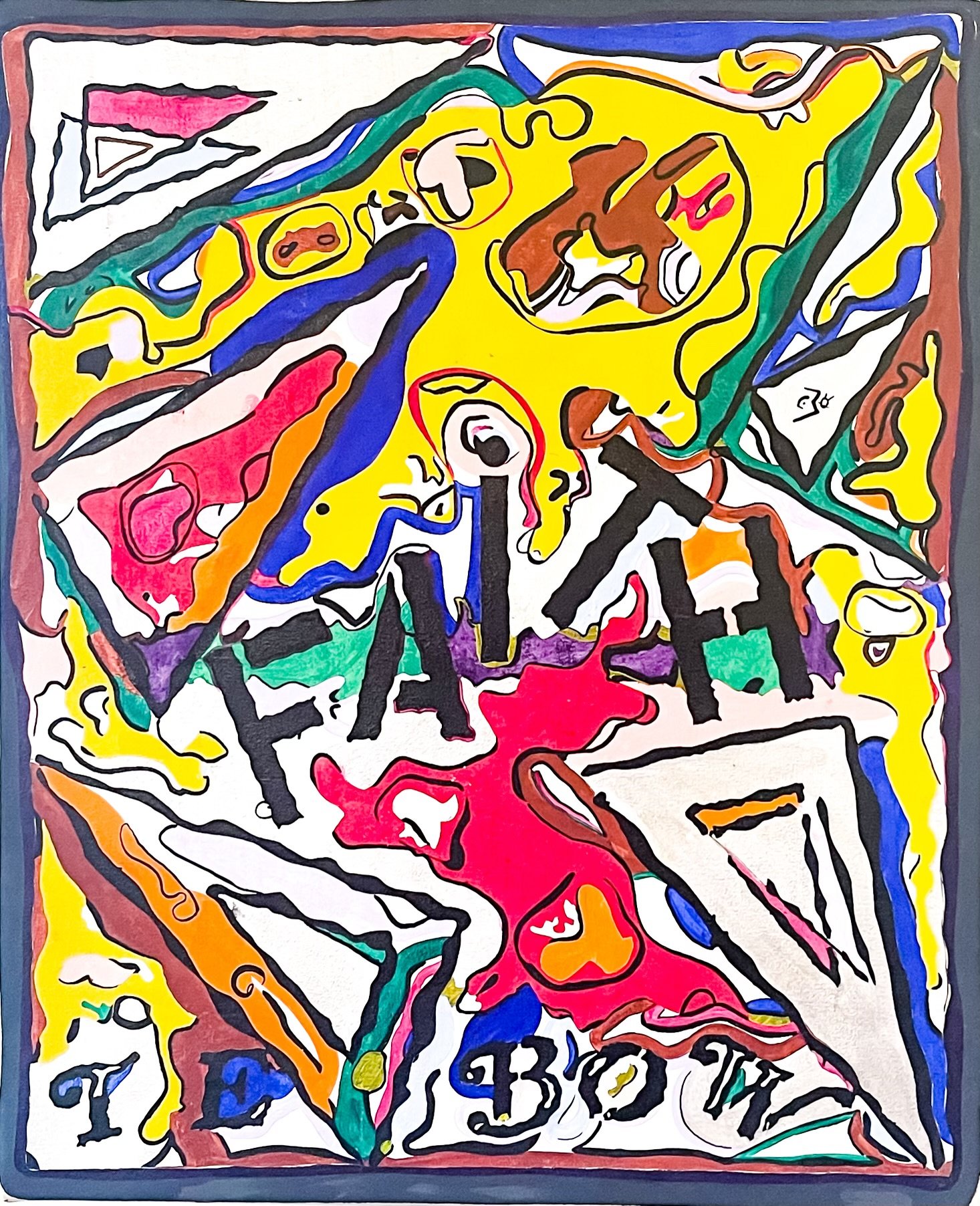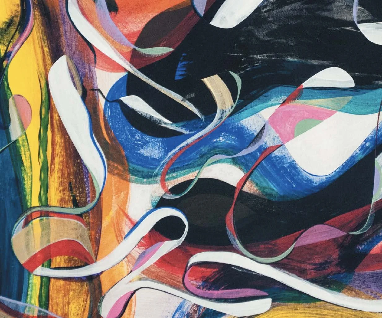 Lesny JN Felix gravitates towards primary, bright, acrylic colors and joyfully flowing shapes. This is his signature style and rooted in his childhood in the colorful Caribbean.