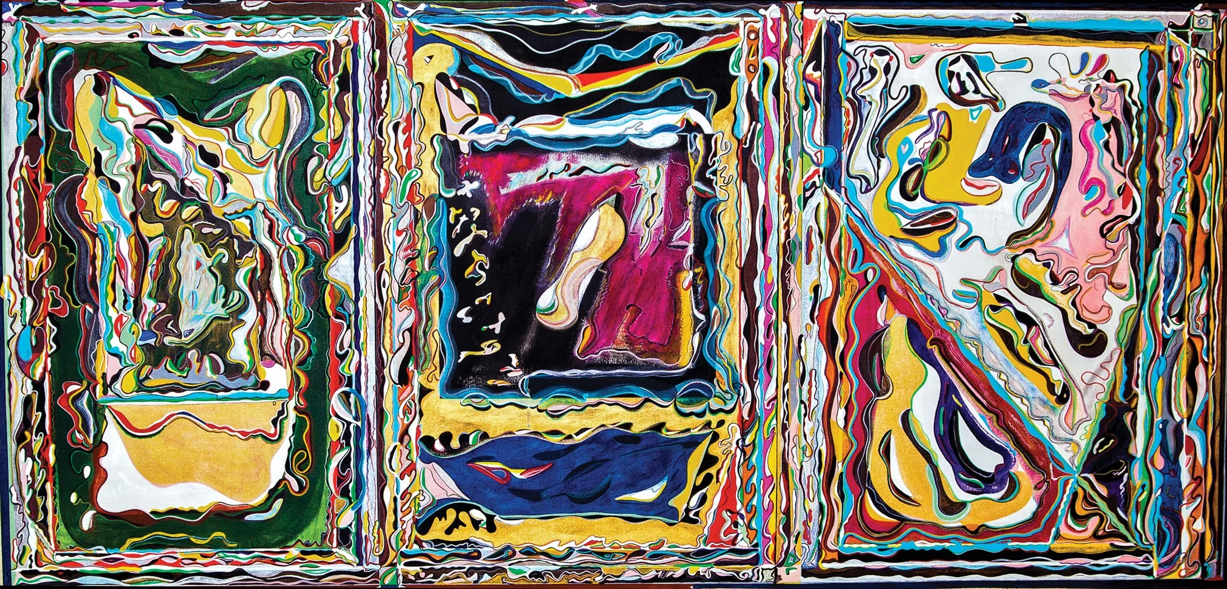 He is known for detailed large abstract canvases, public murals and interiors, and wall paintings.